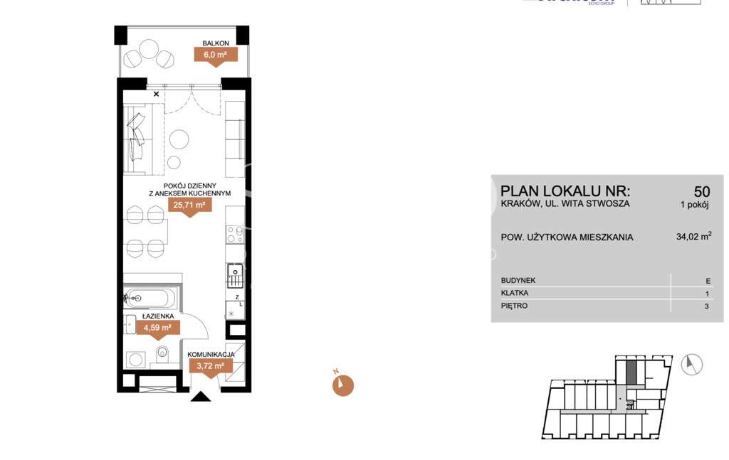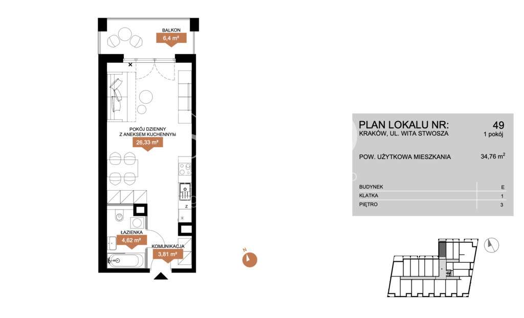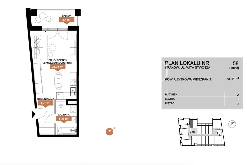 ul. Wita Stwosza (Rakowicka), 34.11m2, 2 pokoje.