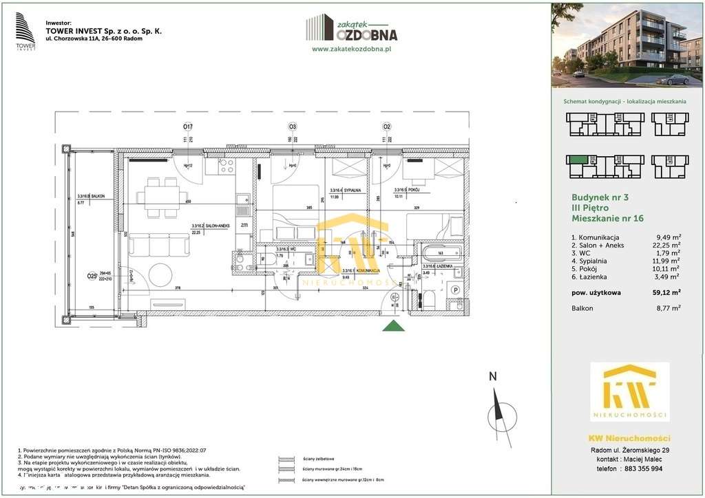 Zakątek Ozdobna M16 B4 - mieszkanie 3 - pokojowe