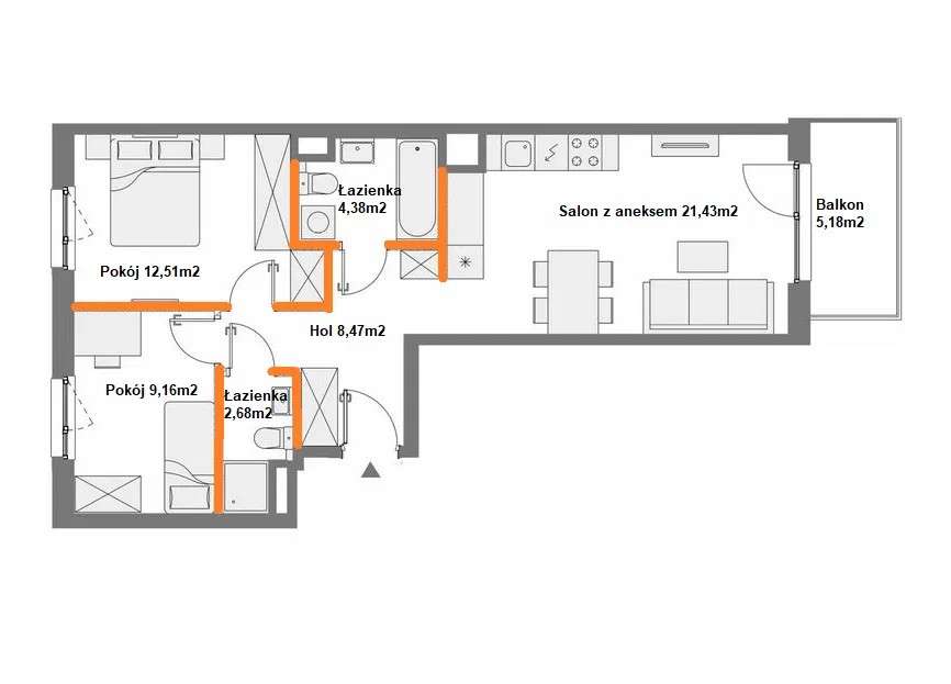3-pokojowe mieszkanie 63m2 + loggia Bezpośrednio