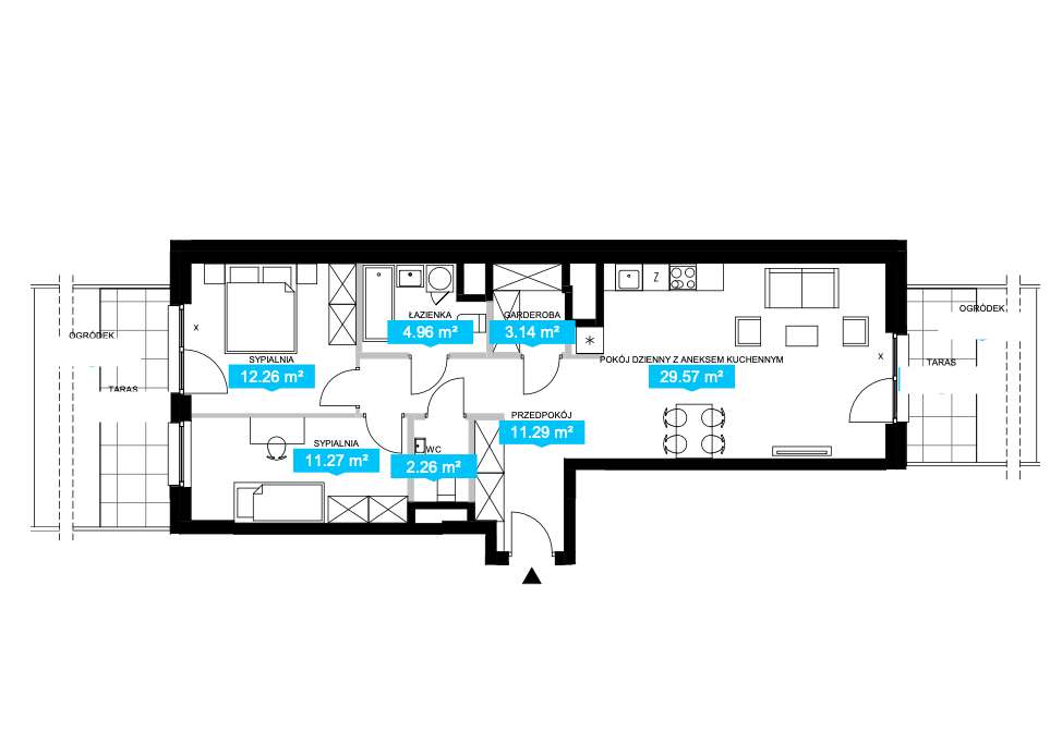 4-pokojowe mieszkanie 91m2 + 2 tarasy Bezpośrednio