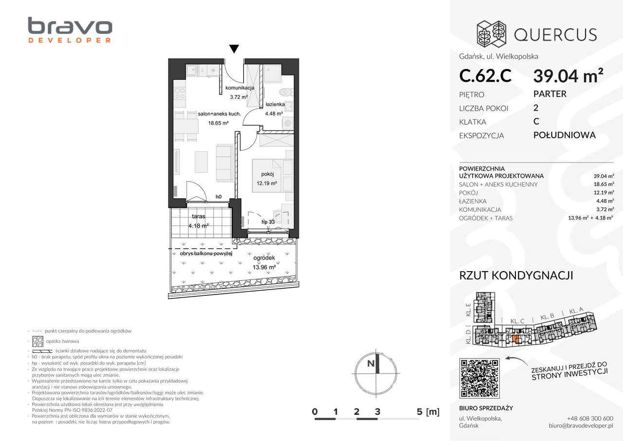 2-pokojowe mieszkanie 42m2 + ogródek