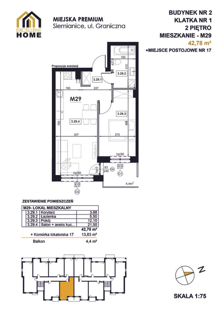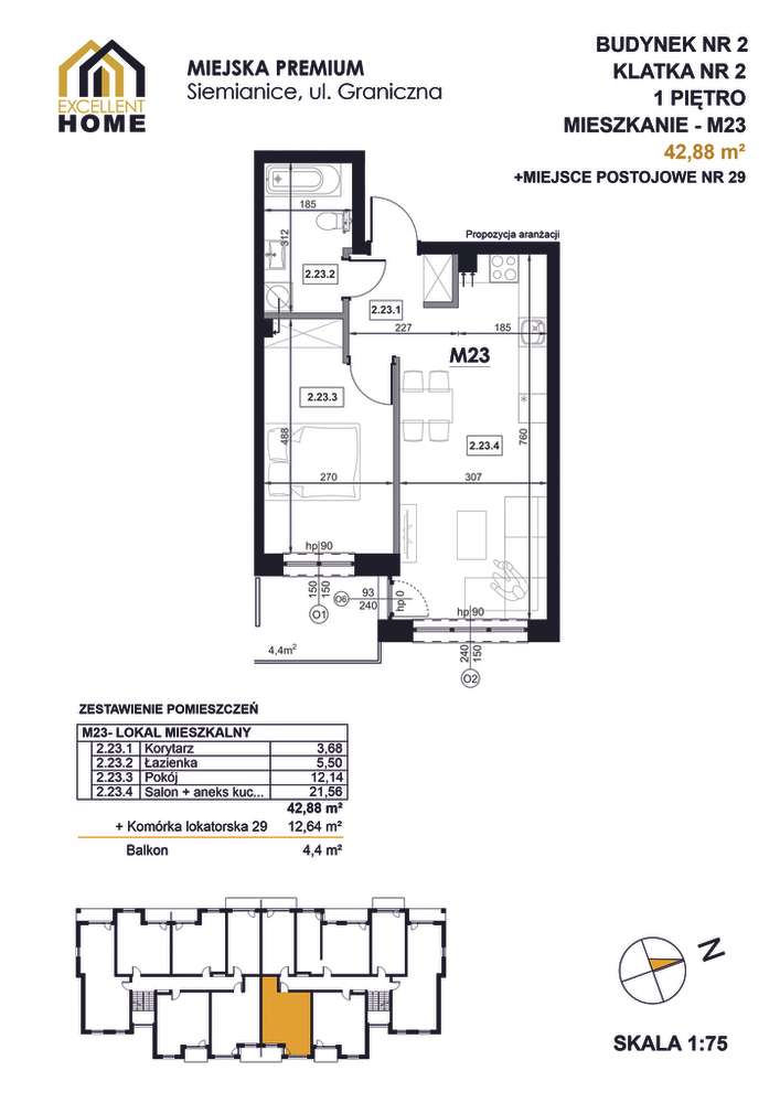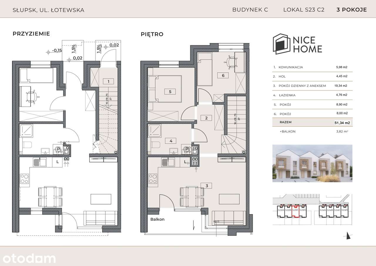 Rewelacyjne mieszkanie – 3 pokoje, 51,34 m², balkon, stan deweloperski