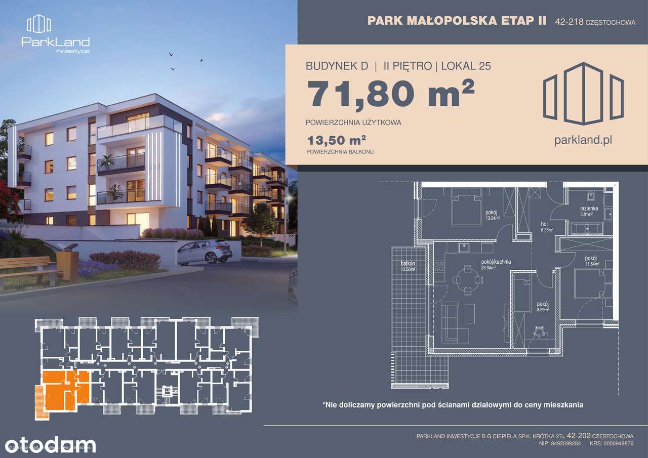 603 000 zł7500 zł/m²- Liczba pokoi