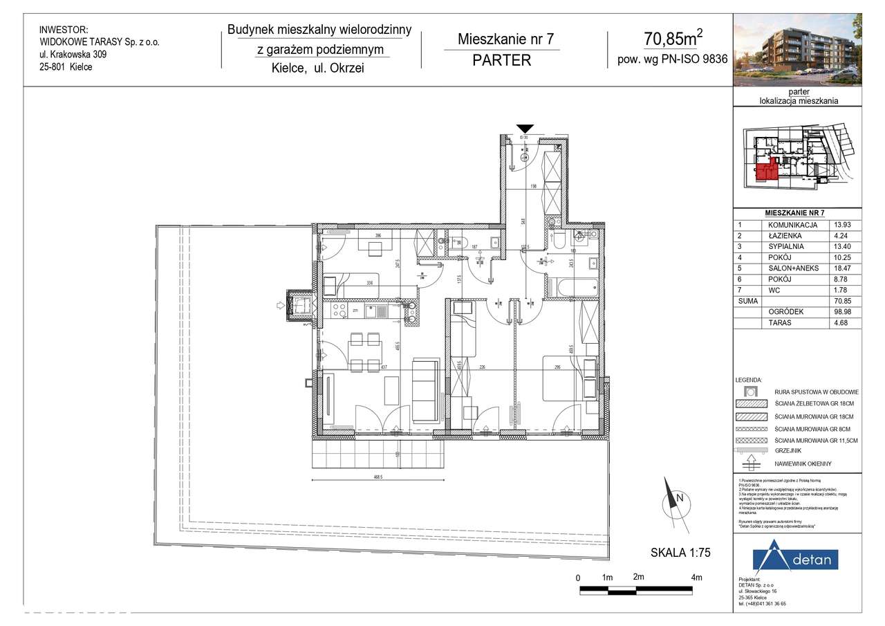 3 Pokojowe mieszkanie 53,49m² + balkon 20m² Kielce ul. Stefana Okrzei