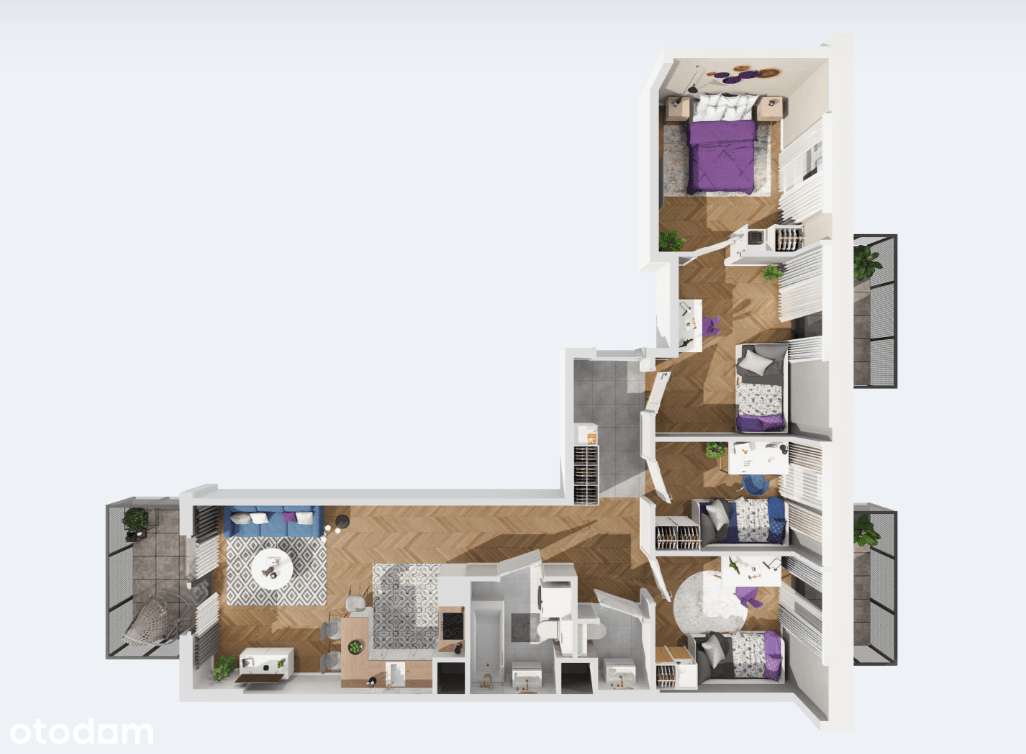 5-pokojowe mieszkanie 69m2 + 3 balkony