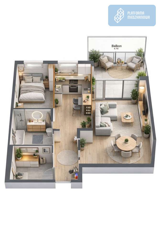 3-pokojowe mieszkanie 59m2 + balkon Bezpośrednio