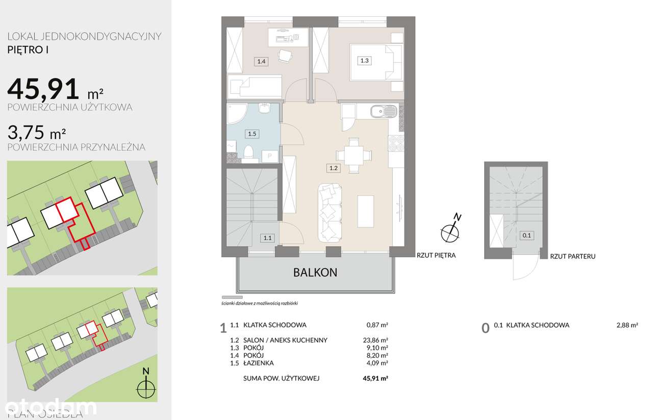 Mieszkanie 88,34m2 + ogród 44m2 + 2 miejsca postojowe