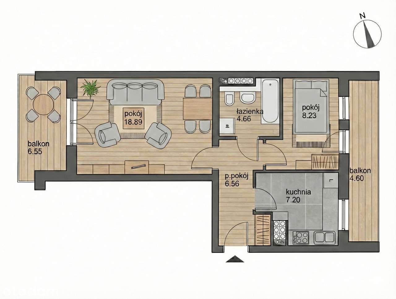Mieszkanie 2-pokojowe w Rusocinie 55 mkw