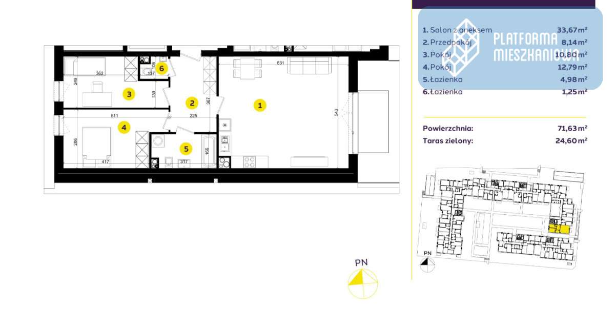 3 pokoje 68,89m2 Pienista 41A