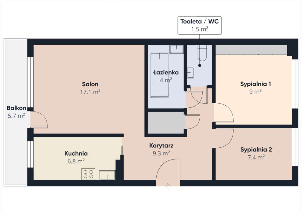 Nowoczesne 3-pokojowe mieszkanie z balkonem