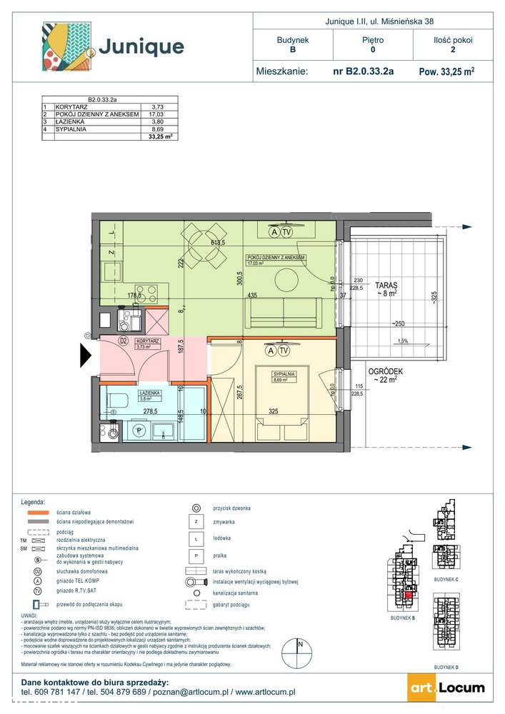 2-pokojowe mieszkanie 33m2 + ogródek