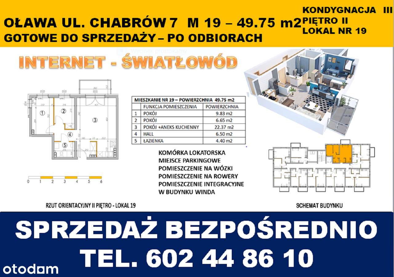 Oława 3 pokoje-IIp-49,75m2-balkon-klimatyzacja-winda-po odbiorach