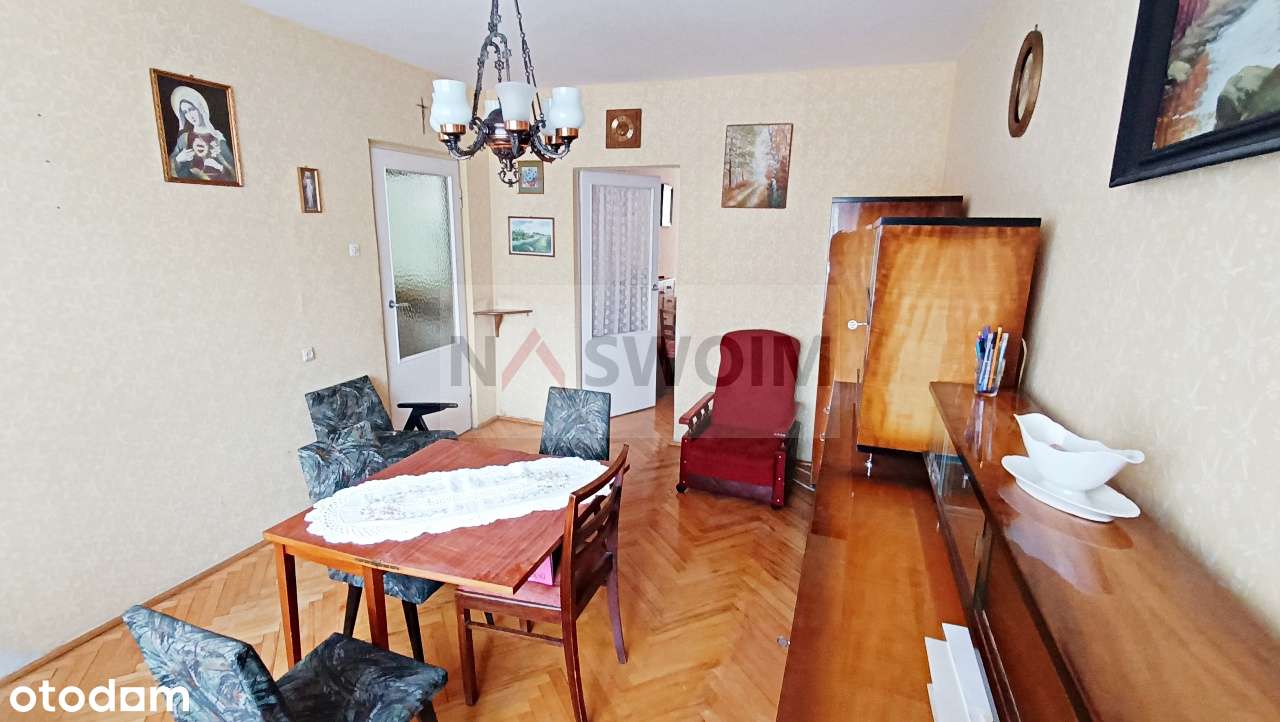 3-pokojowe, 52m2 na parterze w niskim bloku. Do remontu. Cicha okolica