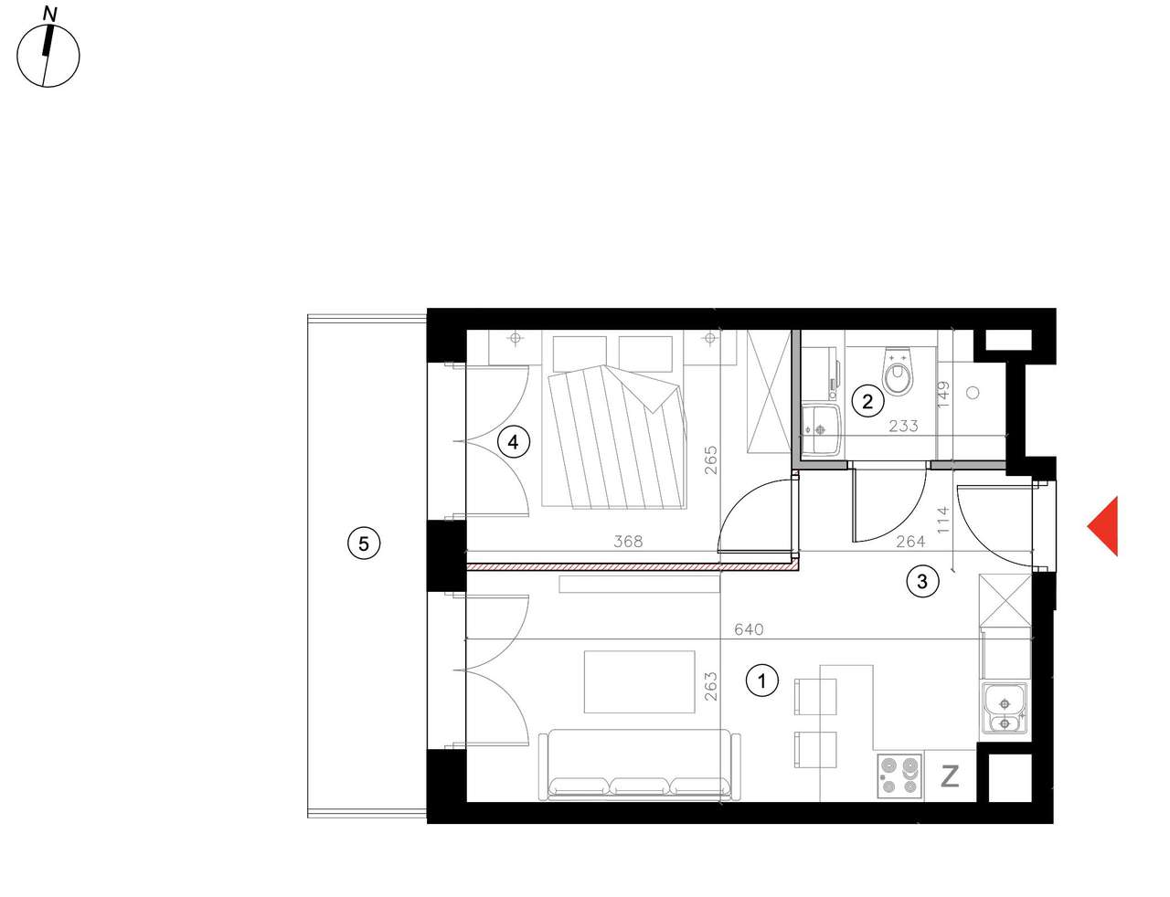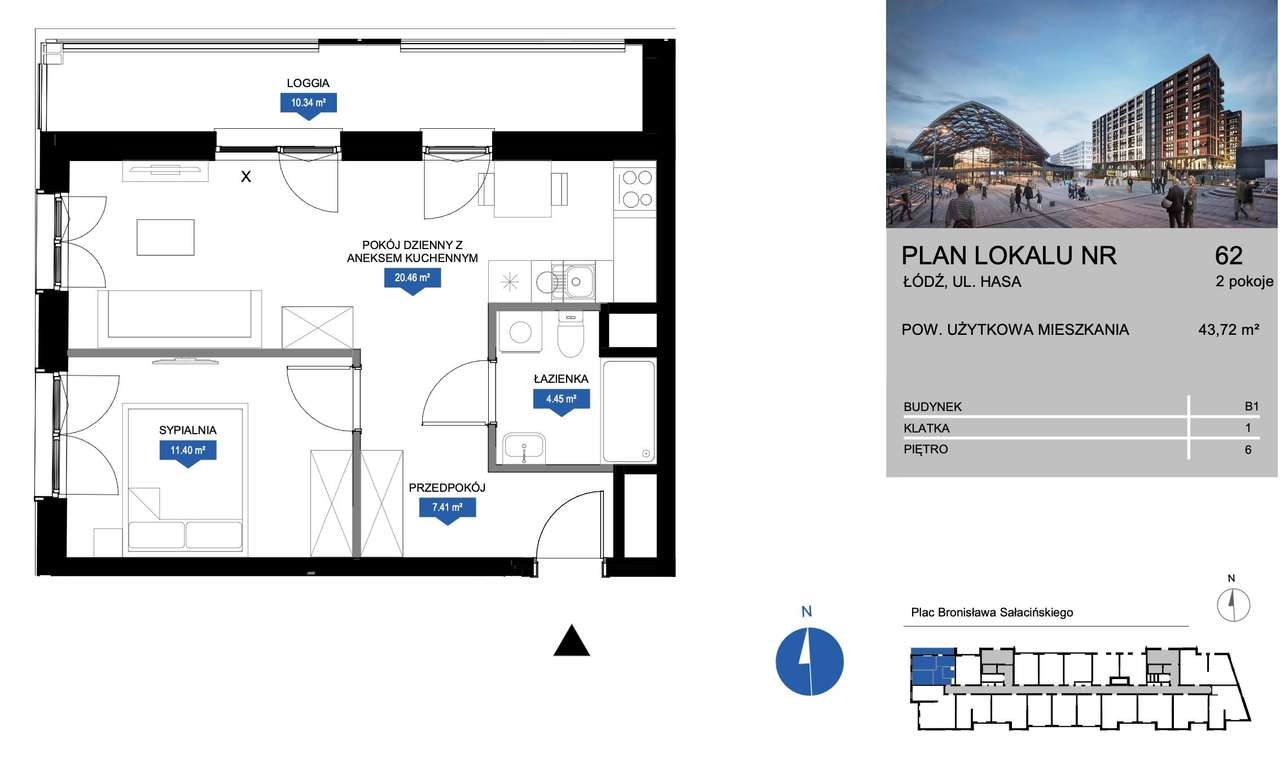 1-pokojowe mieszkanie 39m2 + loggia Bezpośrednio