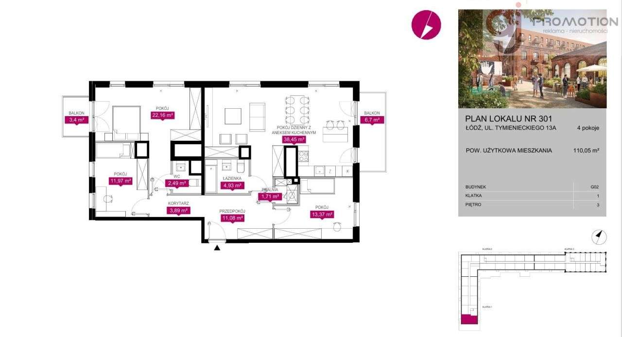 SPRZEDAM LOFT TYMIENIECKIEGO | 57,25 m² ŁÓDŹ TYMIENIECKIEGO