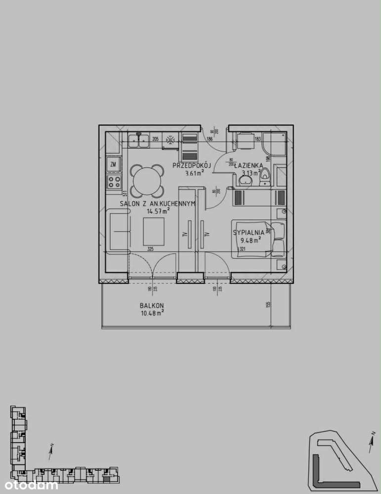 52m2 z dużym balkonem, Blok 2013r, Piwnica, Klima