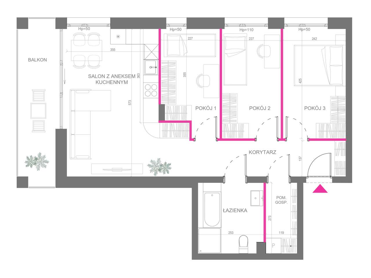 3 pokoje | 75 m2 po podłodze | ostatnie piętro | S