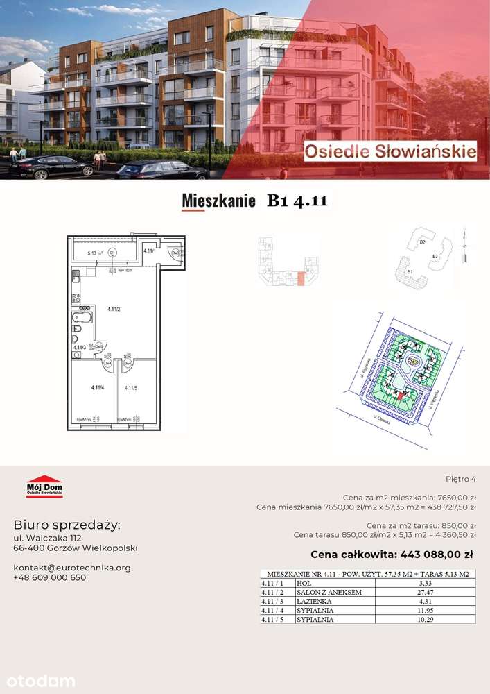 Nowoczesne mieszkanie - 57 m2, B1 4.11