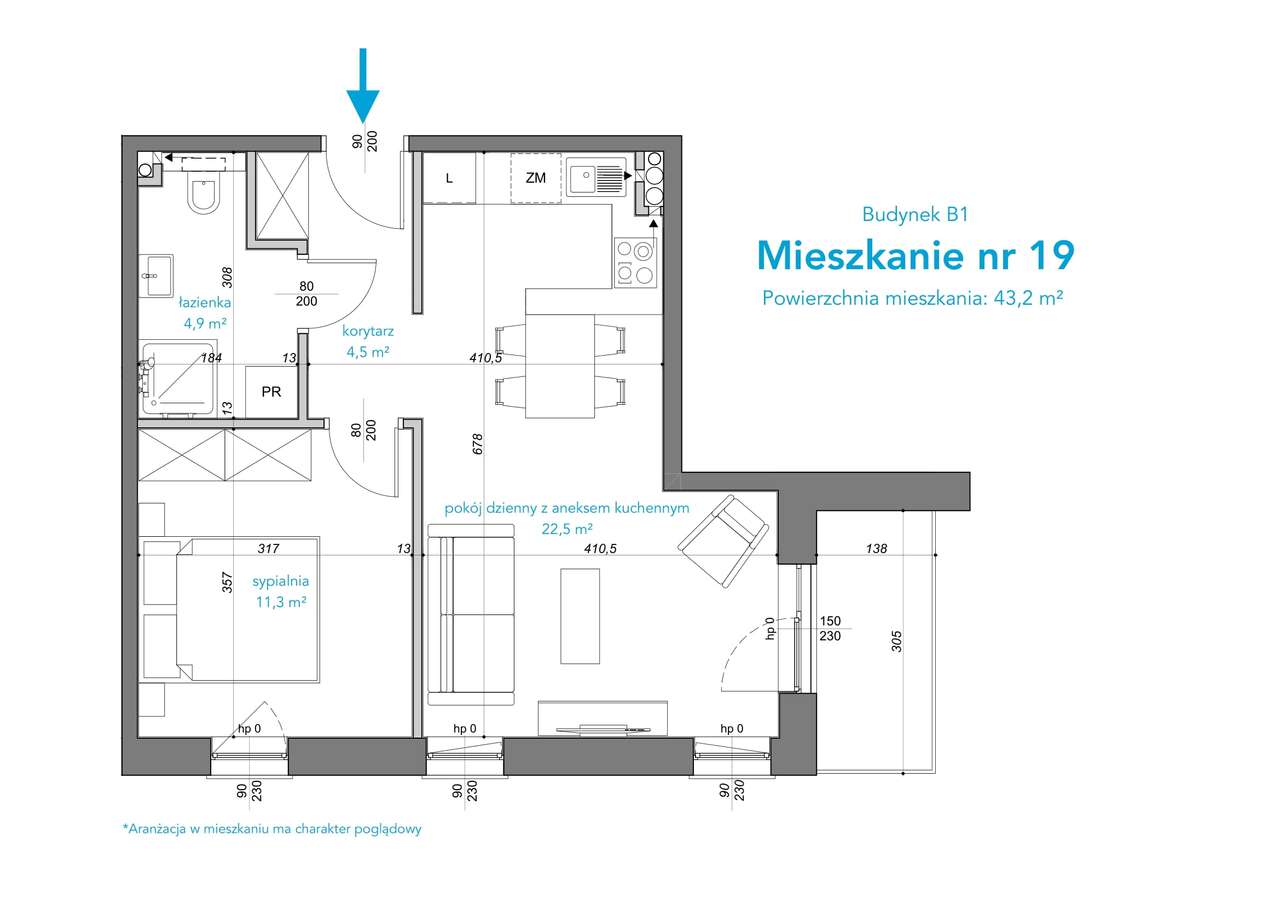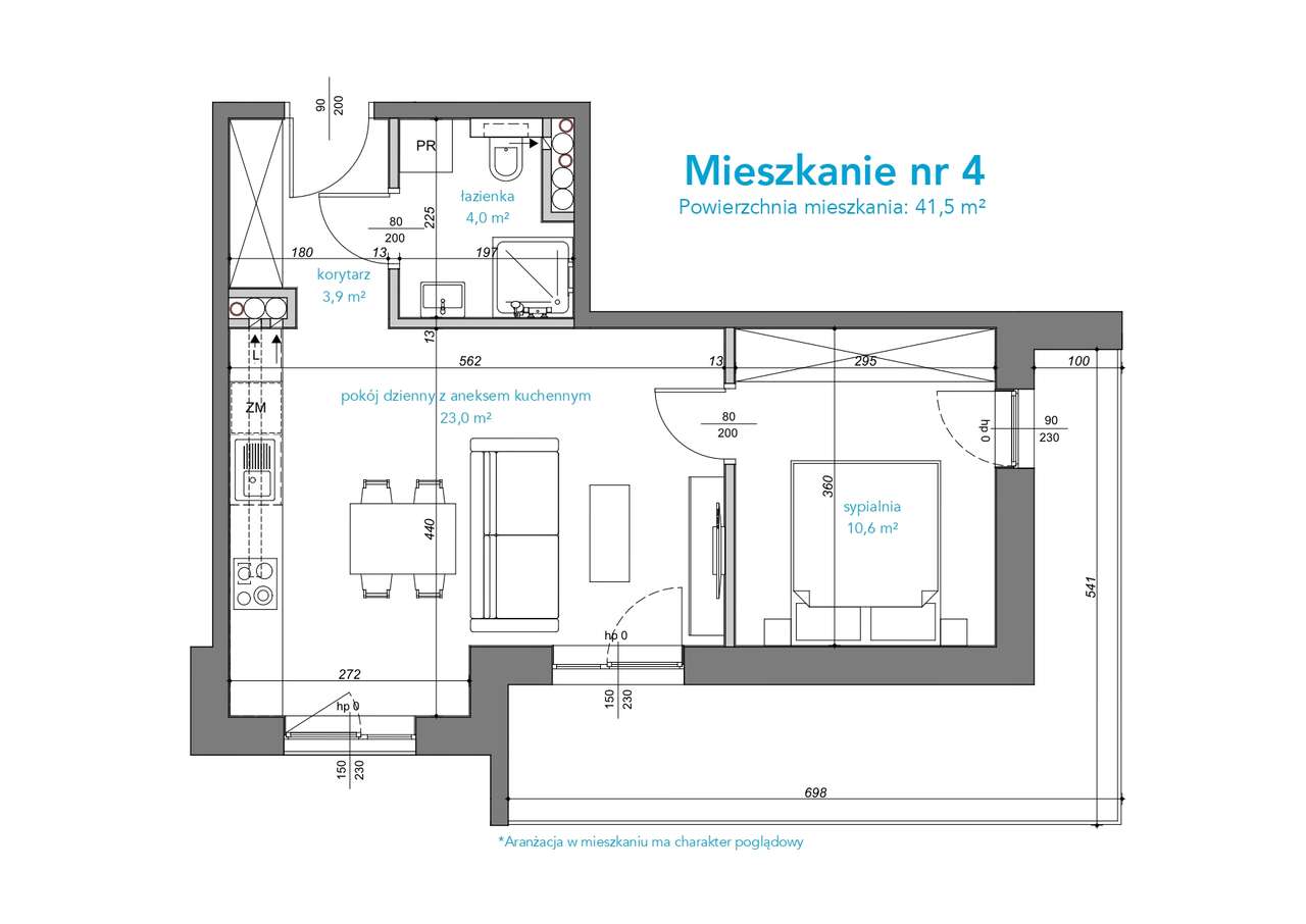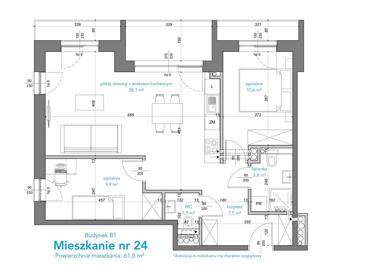 Mieszkanie dwupokojowe 39 m²
