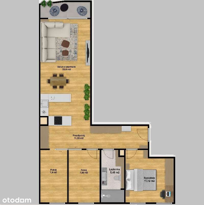 2-pokojowe mieszkanie 77m2 + balkon Bez Prowizji
