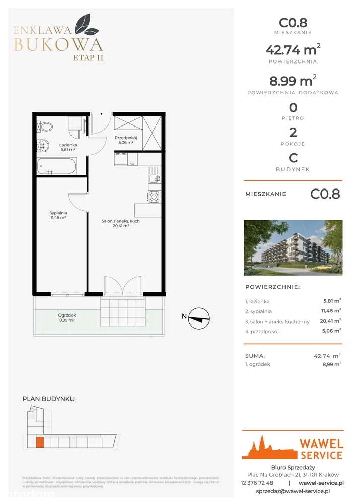 2-pokojowe mieszkanie 46m2 + ogródek Bezpośrednio