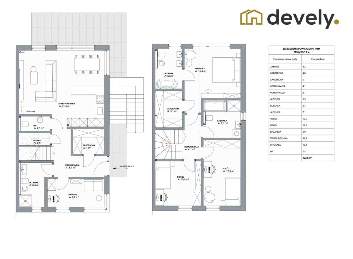 122,8 m2|2 piętra, duże okna - jasne i ustawne