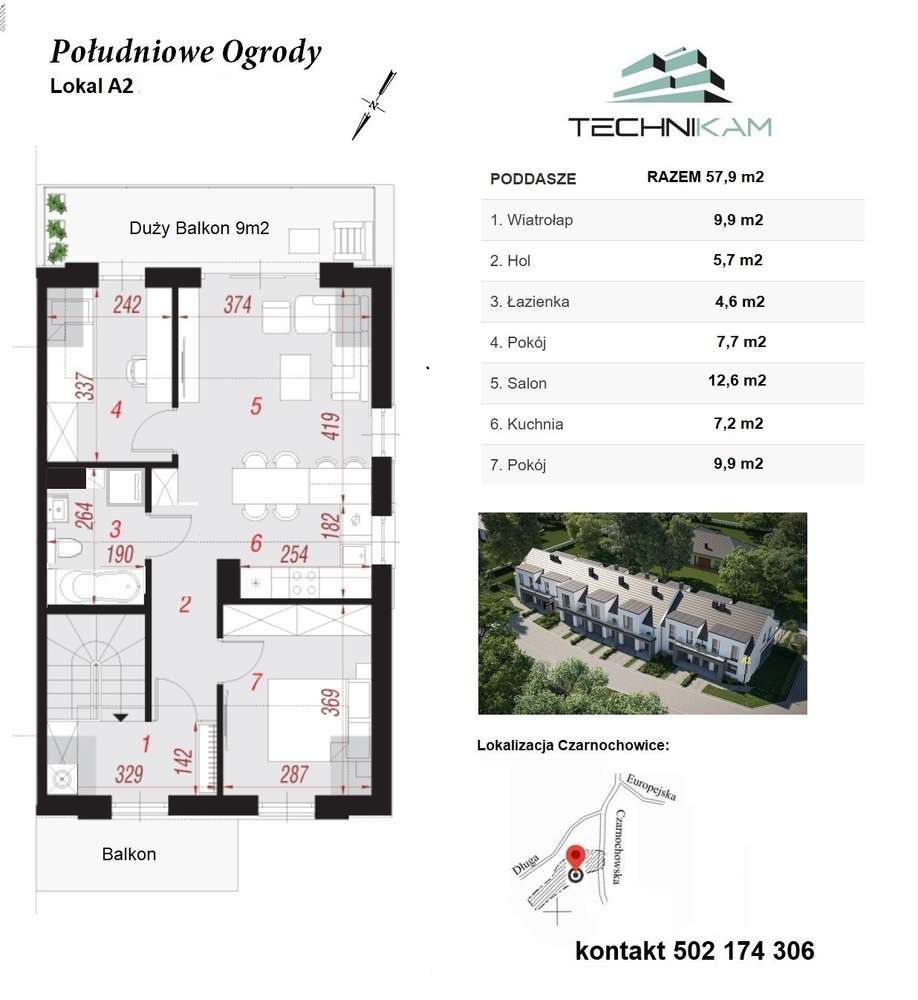Cena Promocyjna Mieszkanie 57,59m2 - 3 pok, strych 30m2, balkony14m2