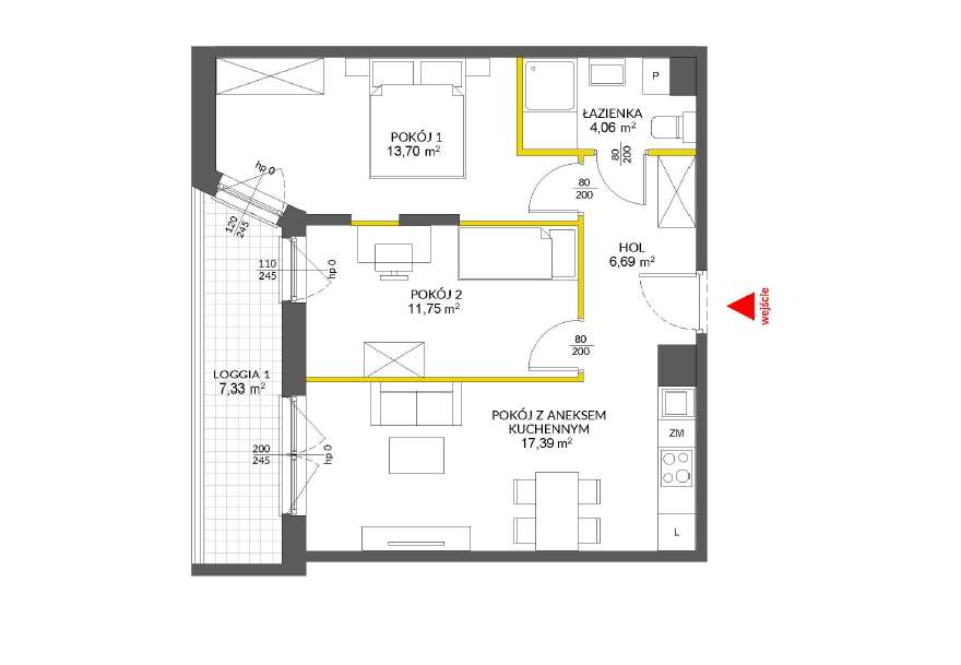 3-pokojowe mieszkanie 63m2 + loggia Bezpośrednio