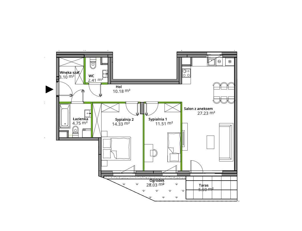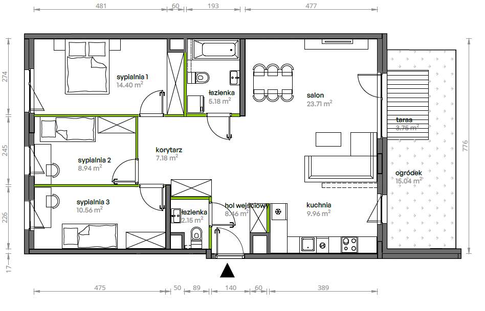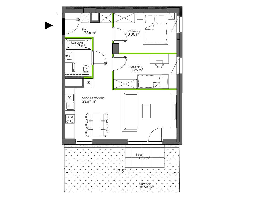 2-pokojowe mieszkanie 40m2 + ogródek