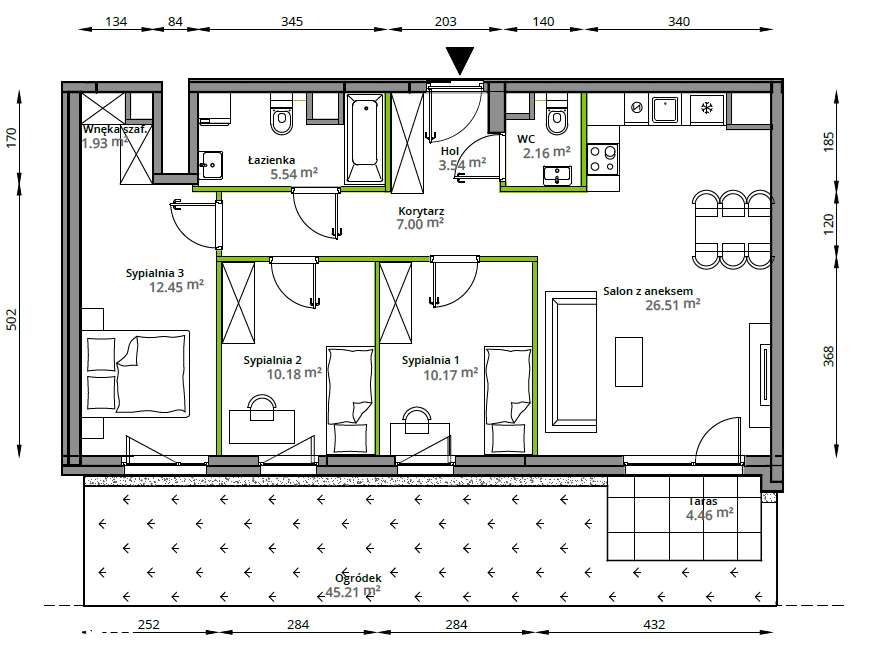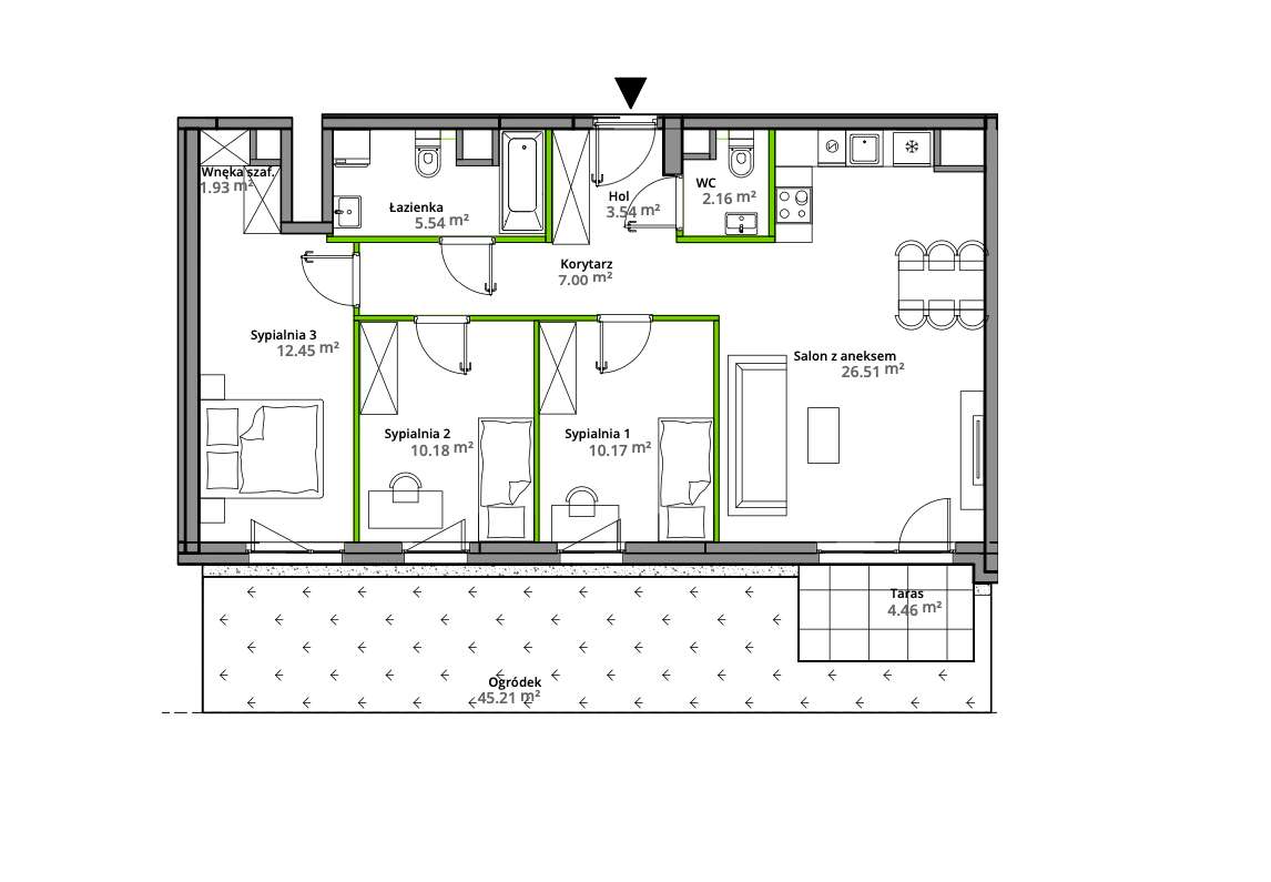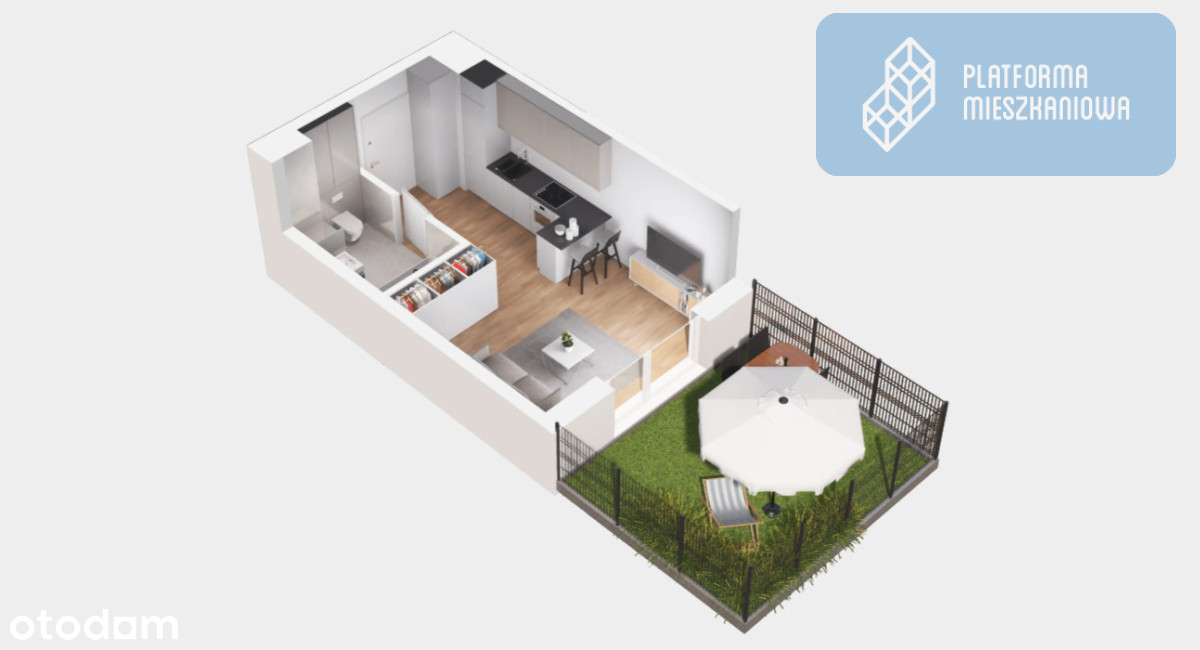Piękne mieszkanie z dużym salonem, GARDEROBĄ i ogródkiem 45,21m2!