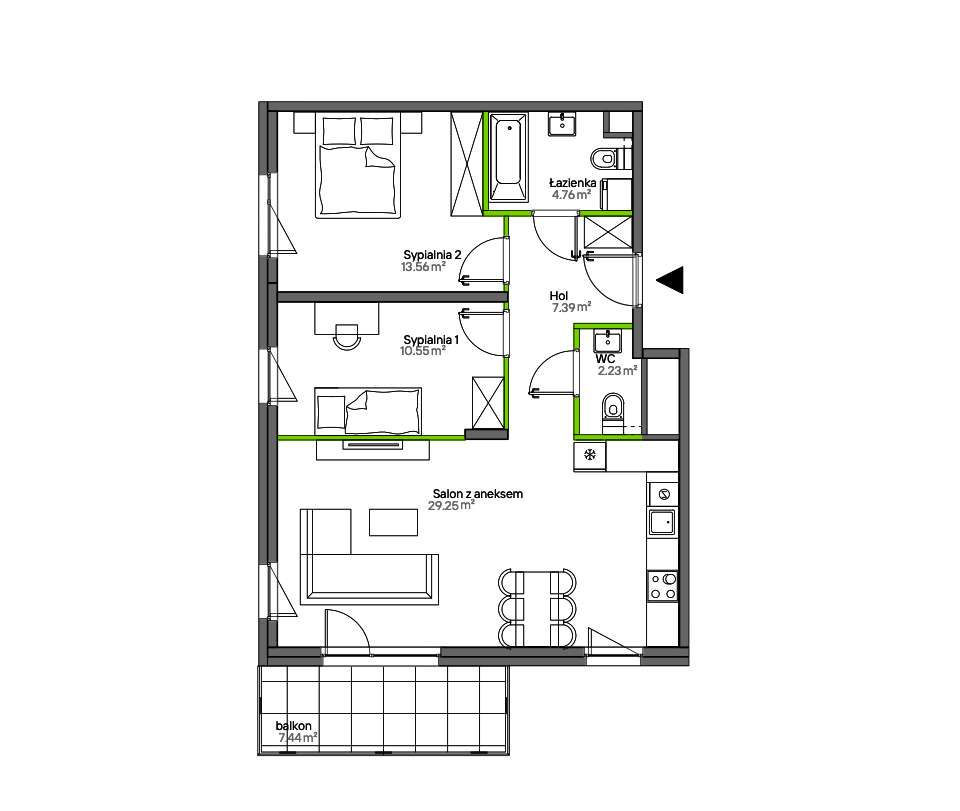 2-pokojowe mieszkanie 35m2 + 2 loggie Bezpośrednio
