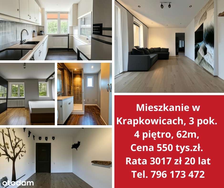 3 pokoje z balkonem 55m2, Krapkowice