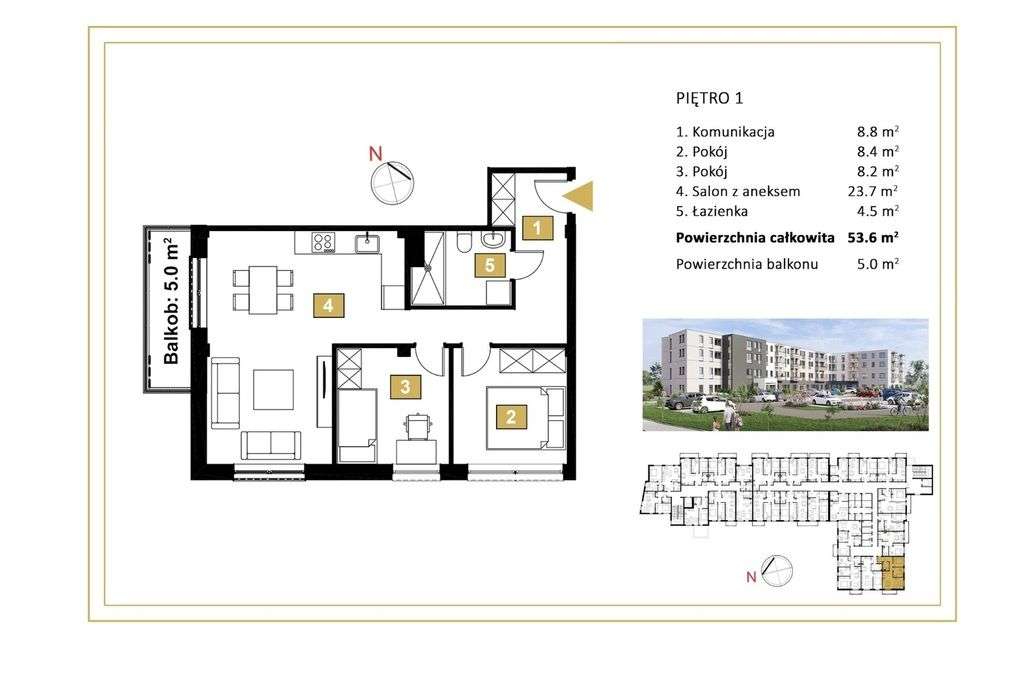 54m2-3 pokoje z miejscem postojowym i duża komórką