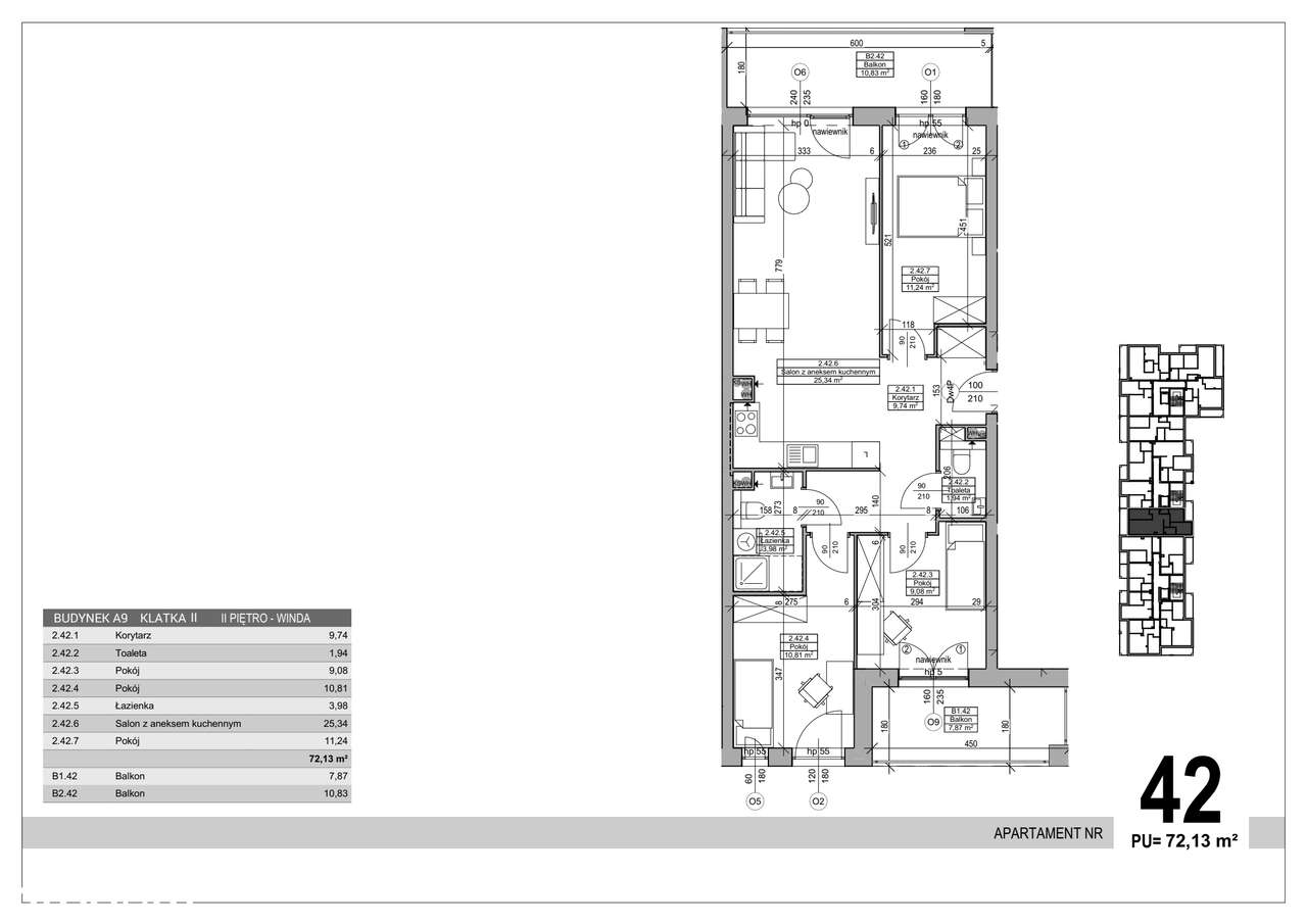4-pokojowe mieszkanie 72m2 + 2 balkony