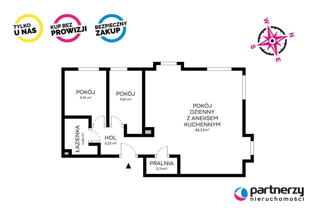 3-pokojowe mieszkanie 57m2 Bezpośrednio