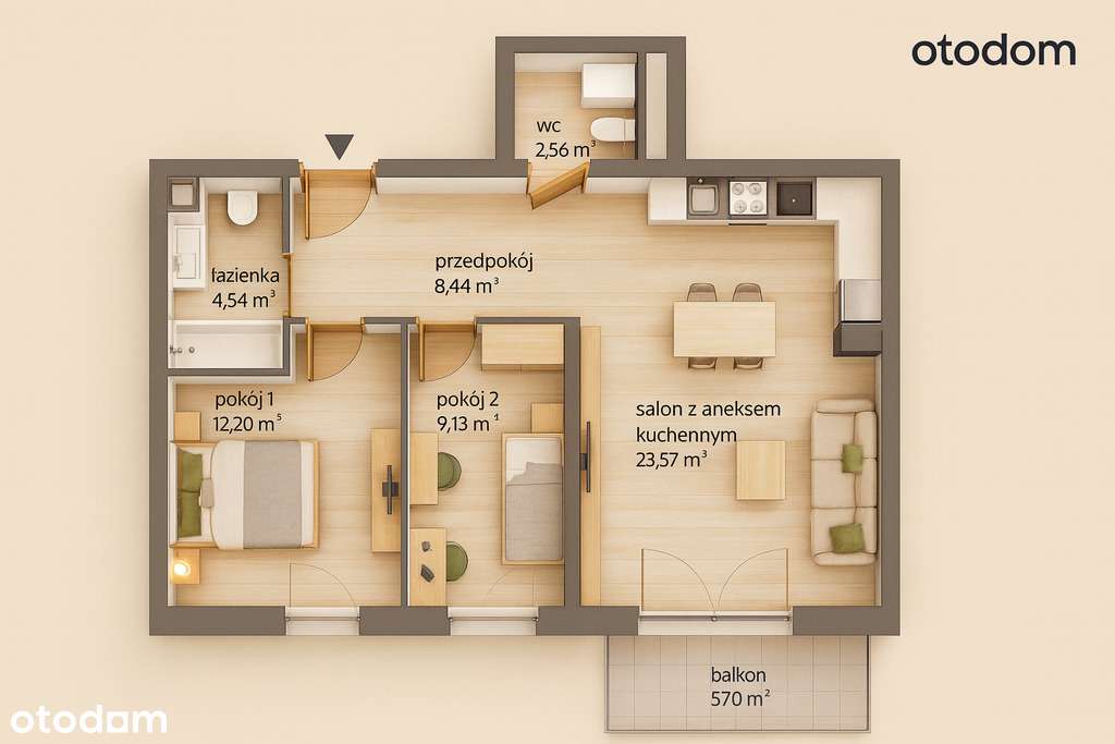 3-pokojowe mieszkanie 61m2 + ogródek Bez Prowizji