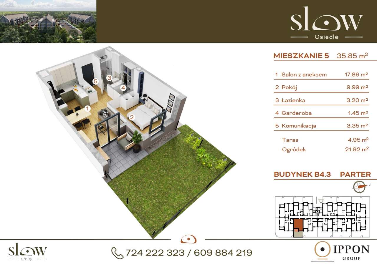 Mieszkanie z ogródkiem - 2 pokoje - osiedle SLOW - B4.3_M5
