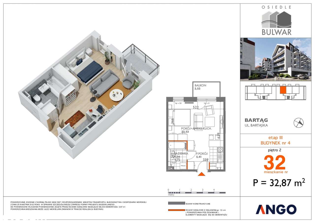 Mieszkanie dwupokojowe z garażem, Bartąska