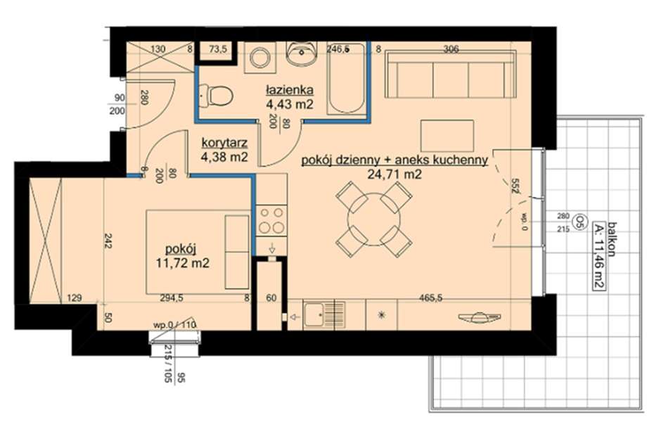 2-pokojowe mieszkanie 40m2 + balkon