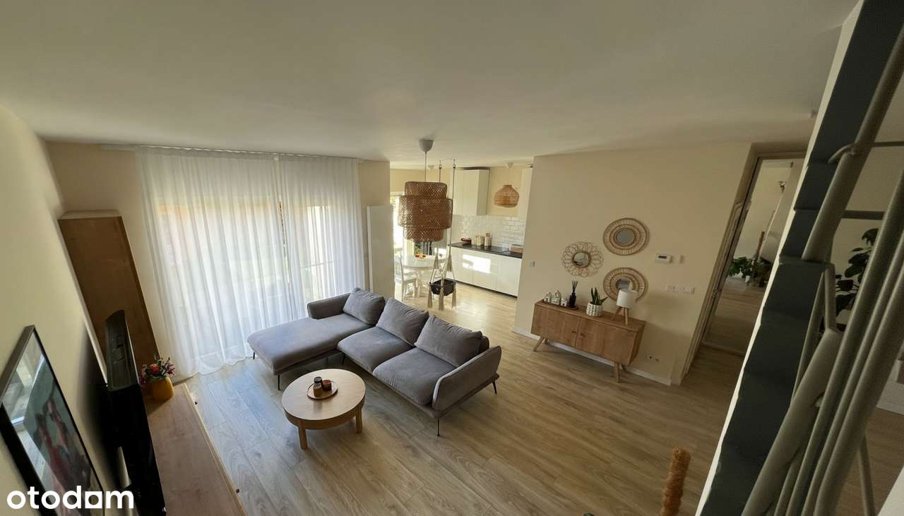 Nowoczesne mieszkanie dwupoziomowe z zagospodarowanym ogródkiem.