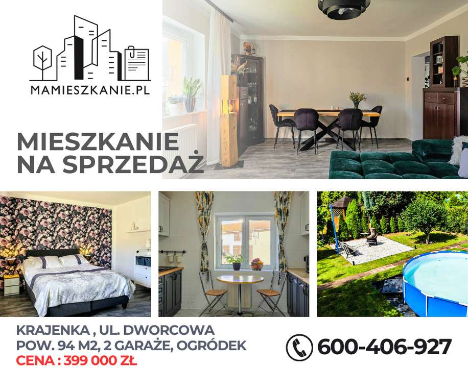 Na sprzedaż przestronne mieszkanie o powierzchni 94 m², położone w Krajence przy ulicy Dworcowej.To idealna propozycja dla osób poszukujących wygodnego, zadbanego lokum z ogrodem i dodatkowymi udogodn...