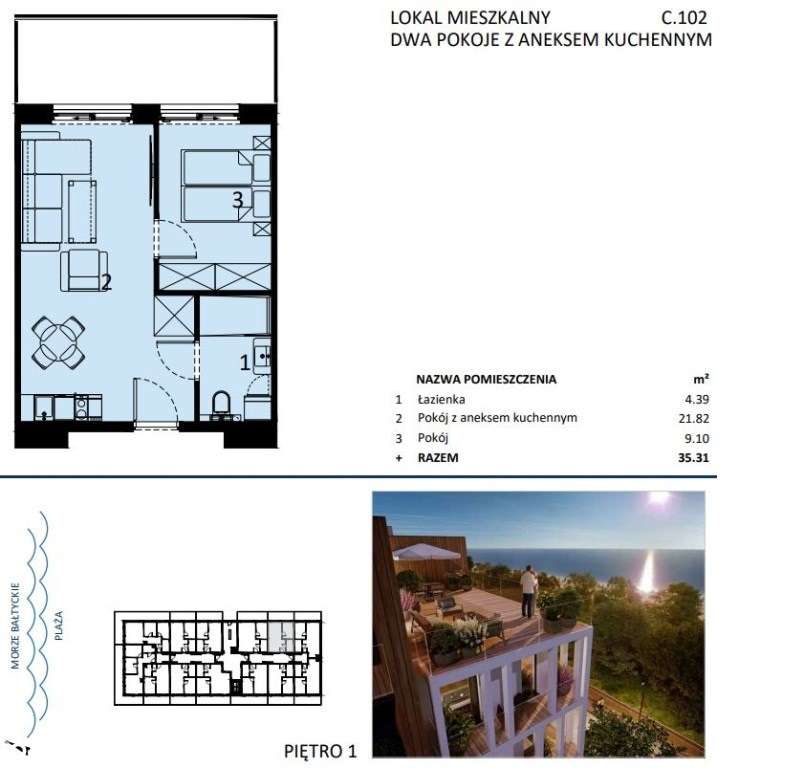 Apartament Perła Mórz M86 dodatkowo antresola