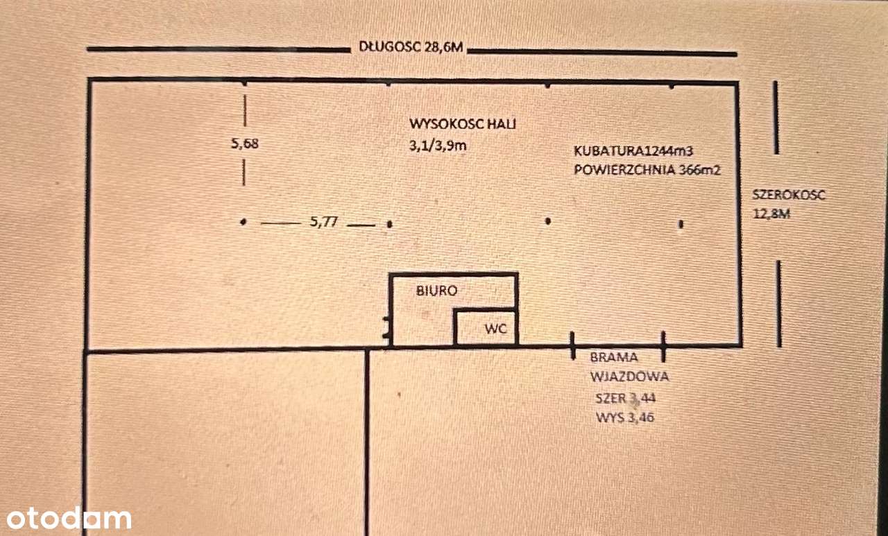 Hala z biurem i zapleczem sanitarnym 366m2 1200m3