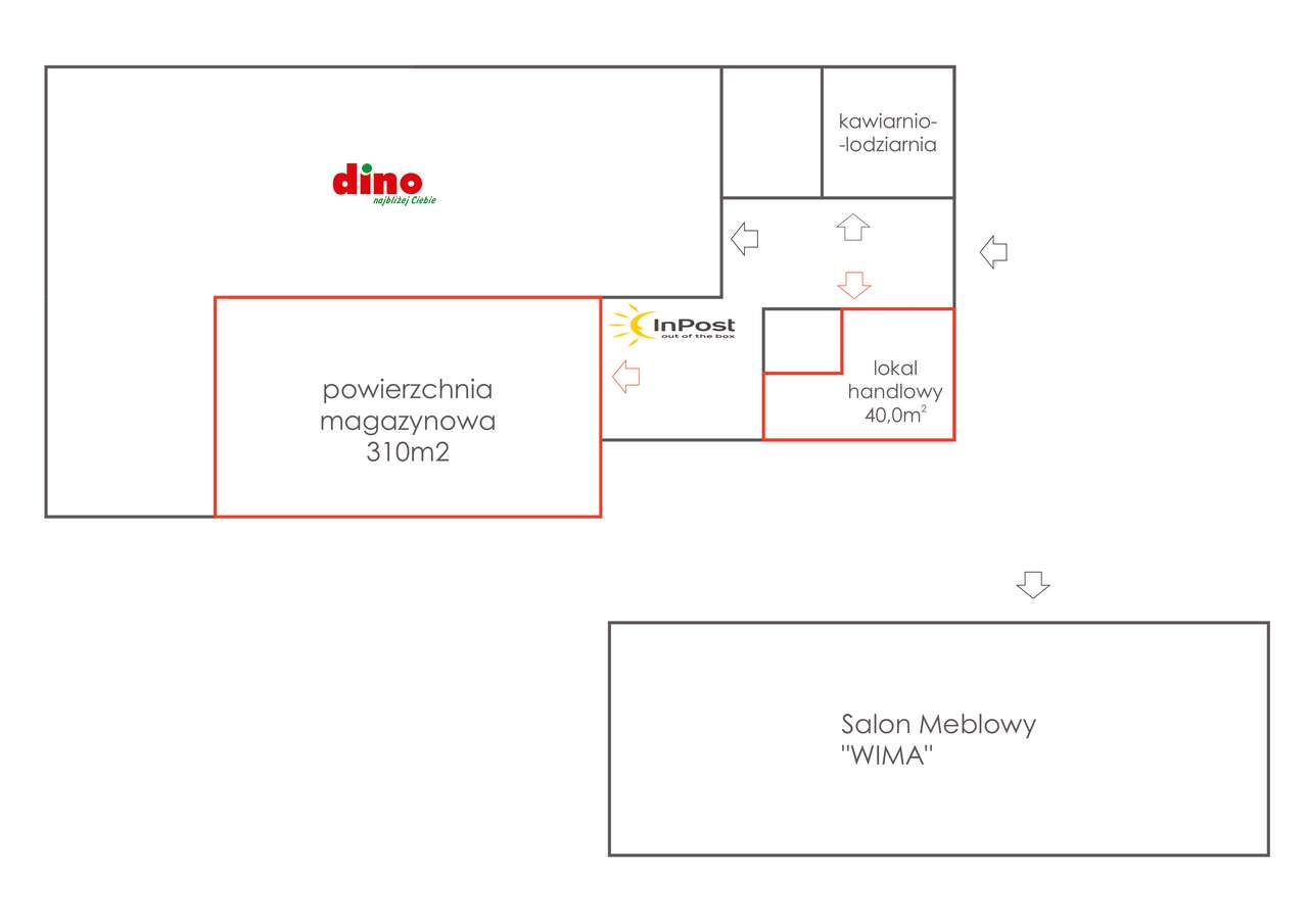 Lokal handlowy 40 m2 + magazyn 310 m2