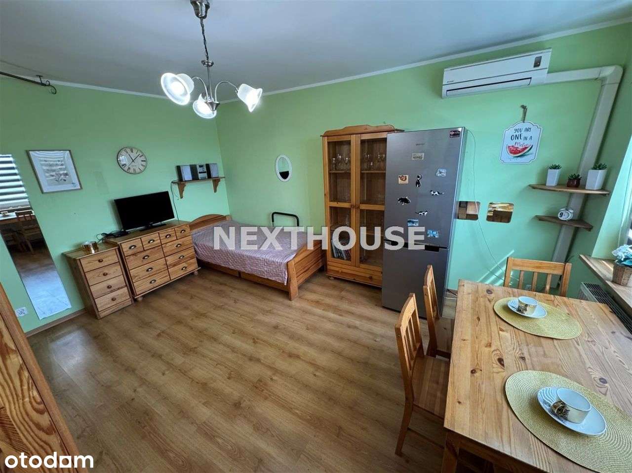 Oferujemy Państwu do wynajęcia, wygodne, komfortowe, w pełni wyposażone i urządzone mieszkanie z klimatyzacją - salon z aneksem kuchennym i łazienką, na piątym piętrze dziesięciopiętrowego docieploneg...