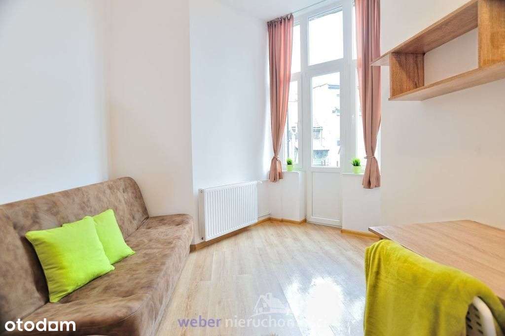 Przytulna kawalerka w centrum z oddzielną kuchnią.