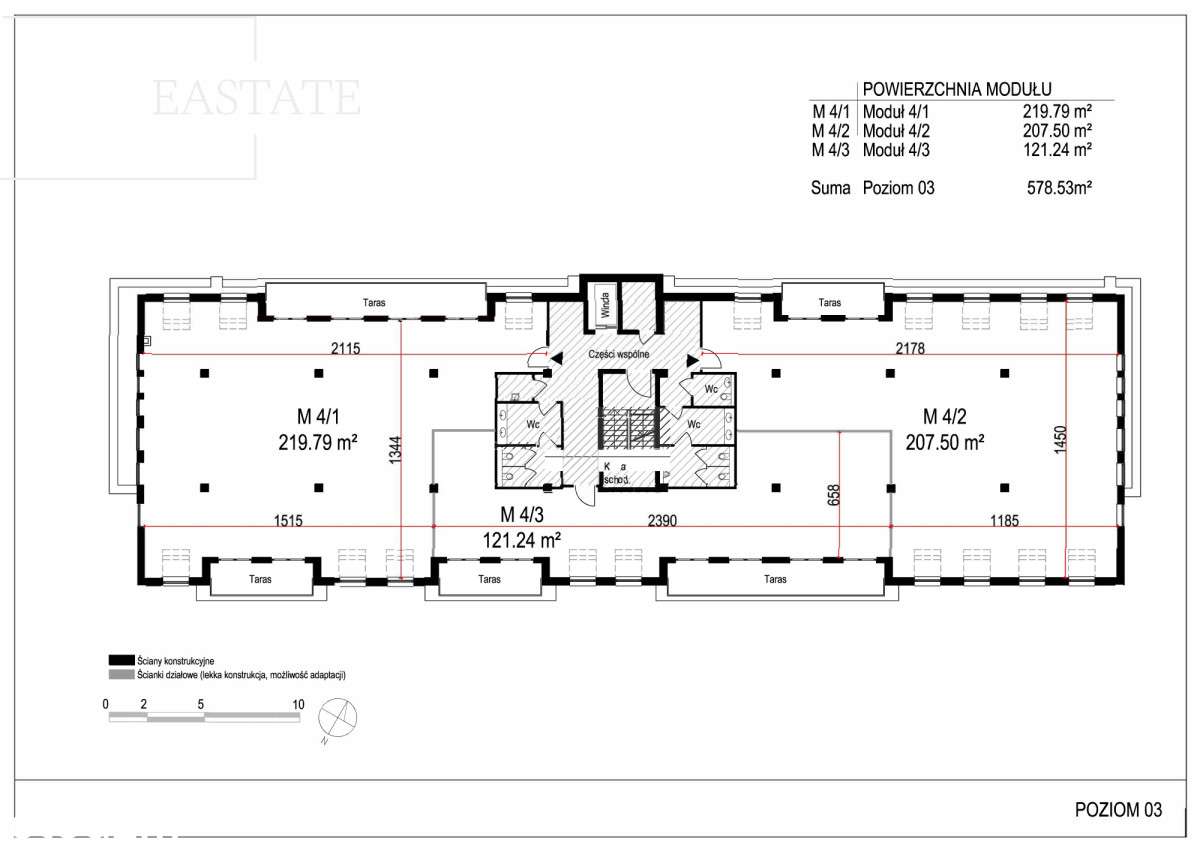 Moduł biurowy 89,52 m.kw - trzy gabinety.