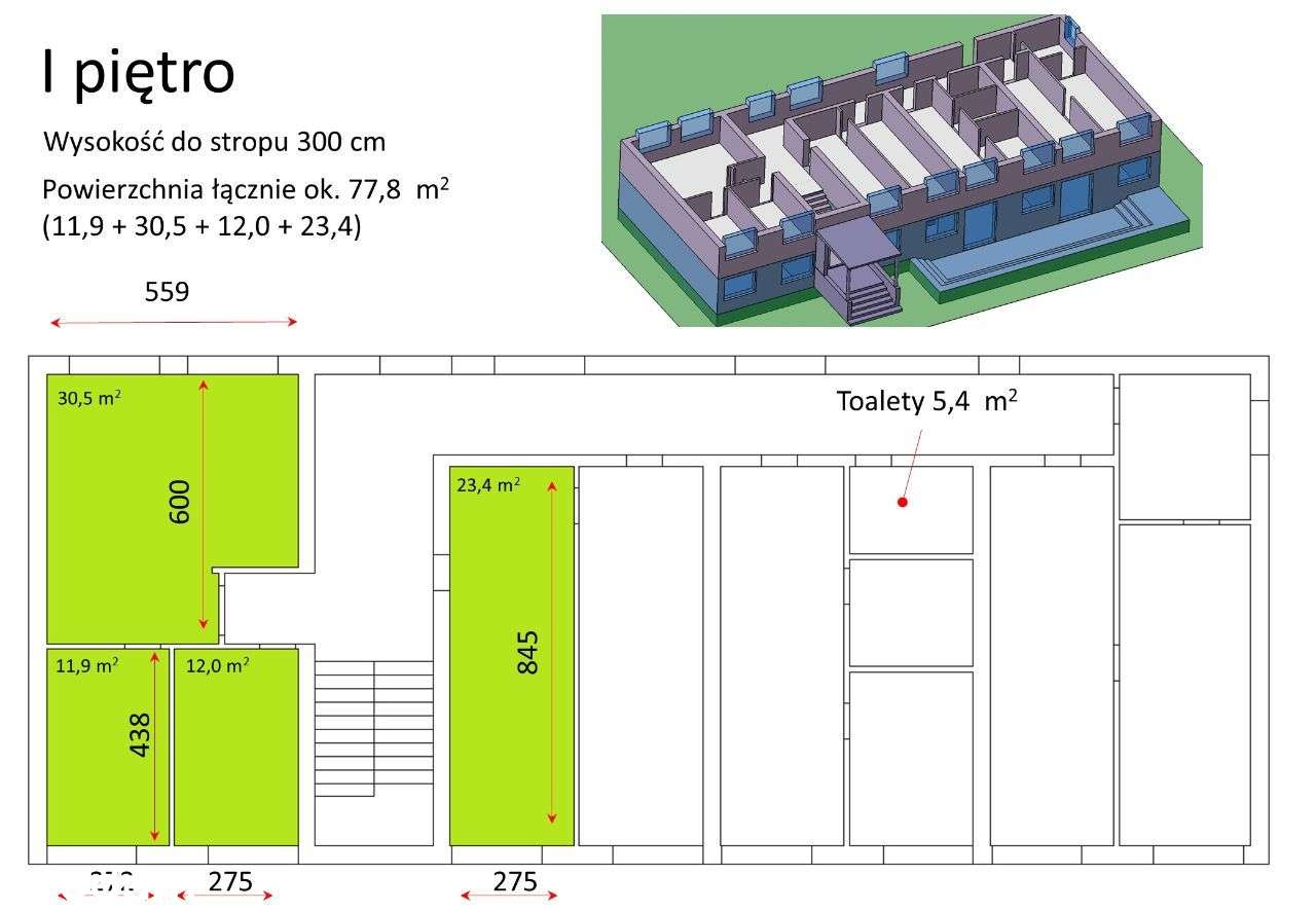 6 pomieszczeń - biura socjal parking centrum