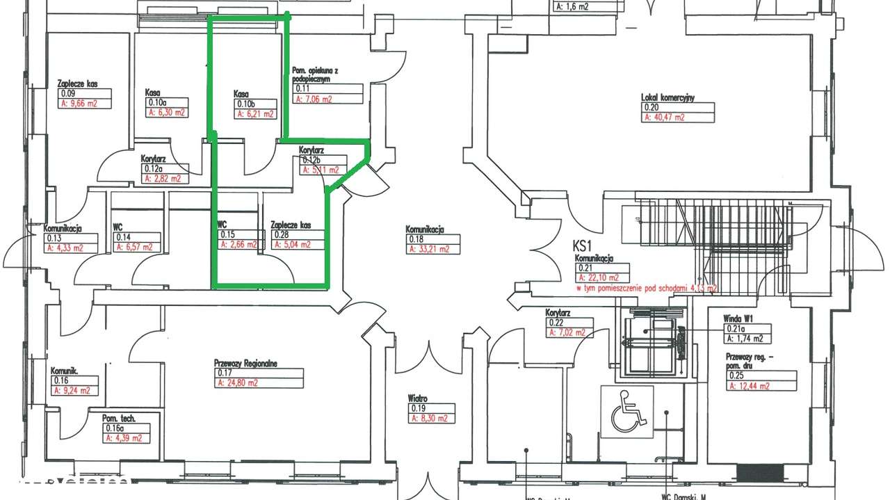 Lokal użytkowy pow. 38,43 m2 z dostępem z zew. oraz z wew. dworca