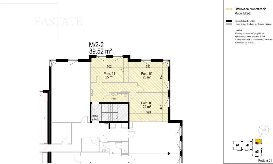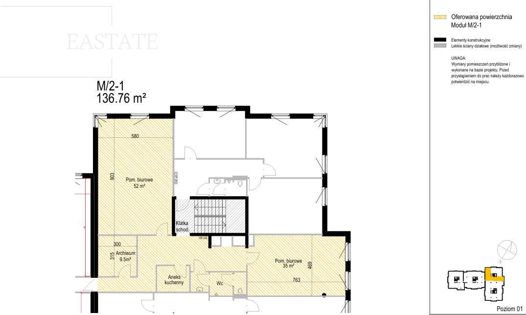 lokal biurowy 19,3 m² + dodatkowe pomieszczenie 3,2 m² (opcjonalnie)